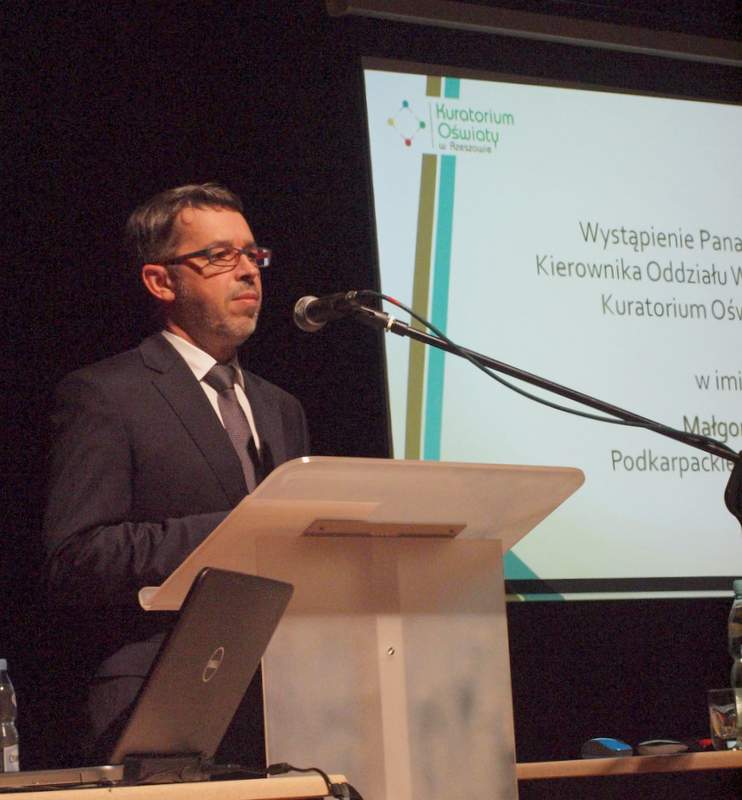 Na wstępie konferencji głos zabrał Kierownik Marek Kondziołka Kierownika Oddziału Wspomagania i Innowacji Kuratorium Oświaty w Rzeszowie, który w miłych słowach docenił wielką pracę głównych prelegentów Dyrektora Macieja Polańskiego z Zespołu Szkolno-Przedszkolnego nr 2 w Leżajsku i Dyrektora Romana Matuszka z Zespołu Szkół im. prof. Franciszka Leji w Grodzisku Górnym, dziękując im za ich wielką pasję i rolę w upowszechnianiu od 2008 r. robotyki na Podkarpaciu.