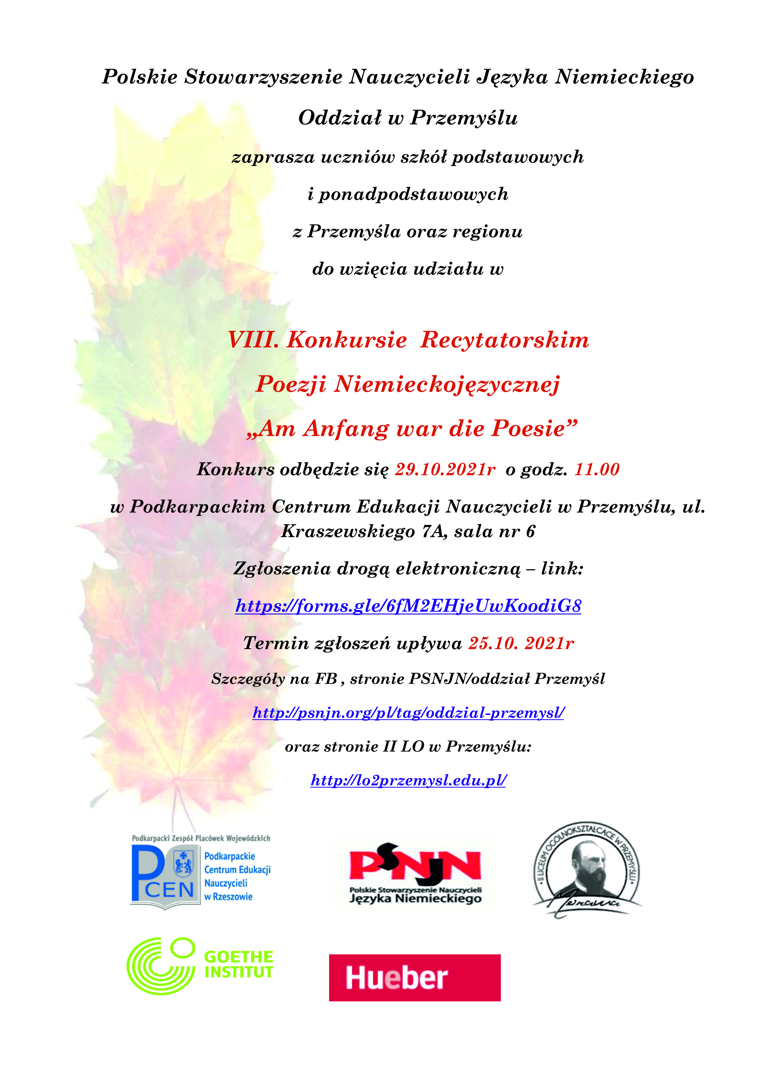 Konkurs odbędzie się 29.10.2021r w PCEN Oddział w Przemyślu, ul. Kraszewskiego 7a.